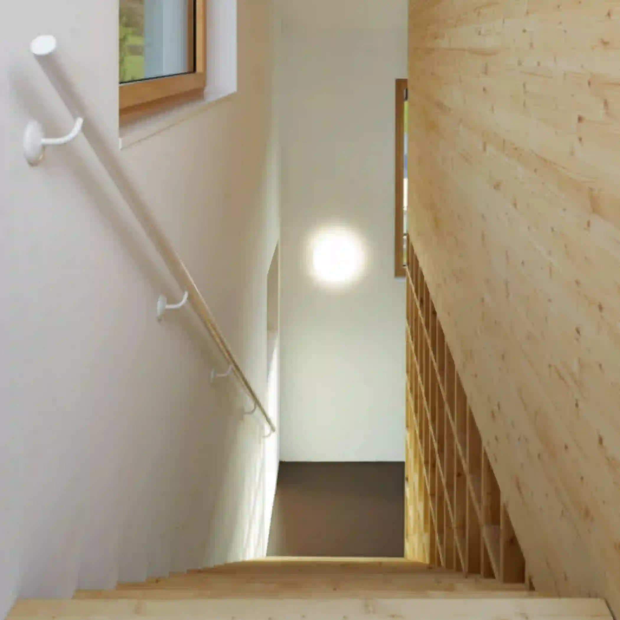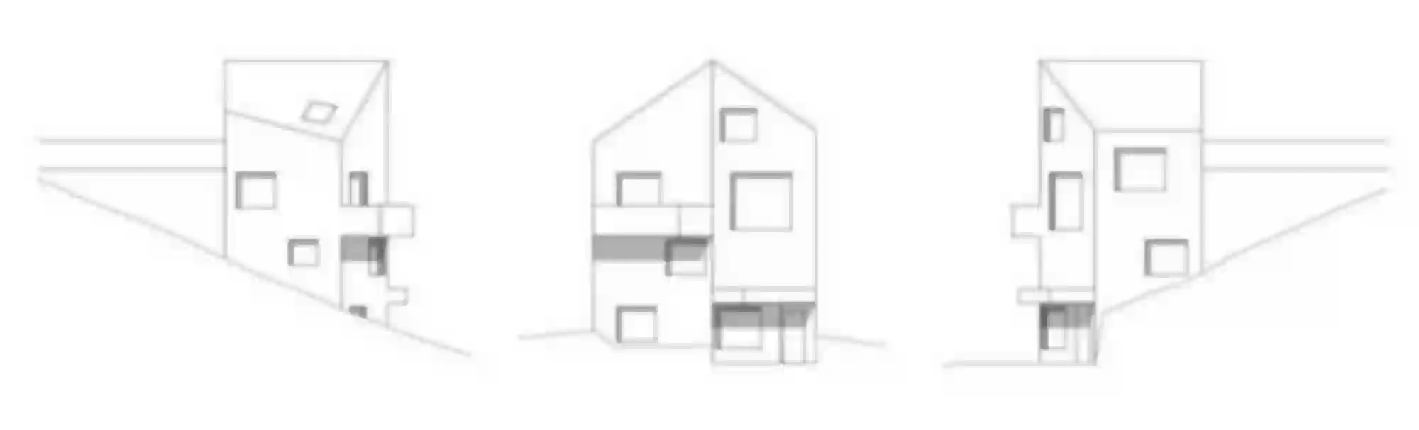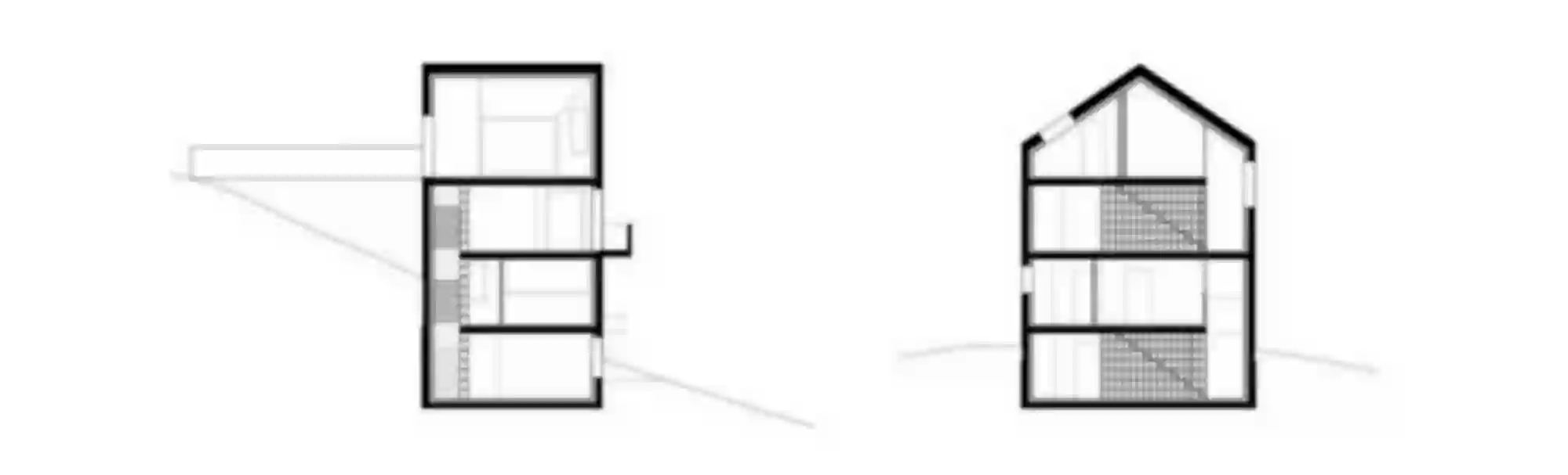 Auf einem begrenzten Baufeld von 70 qm entstand dank geschickter Lektüre des Baureglements ein Wohnhaus, dessen turmartige Erscheinung aus einem Hügel herauszuwachsen scheint. Vier Wohnebenen sind darin übereinander geschichtet, die über eine durchgehende Bibliothek und Treppe miteinander verwoben sind. Das Durchschreiten der Etagen bietet dabei unterschiedliche Blickbeziehungen und verbindet sich dank umlaufender Fenster auf vielfältige Weise mit der landschaftlich geprägten Umgebung. Trotz der eigenständigen Erscheinung und klaren Materialisierung schreibt der Neubau die vorhande Formensprache fort und verbindet sich harmonisch mit dem von sattelbedachten Einzelbauten geprägten Ortsbild.